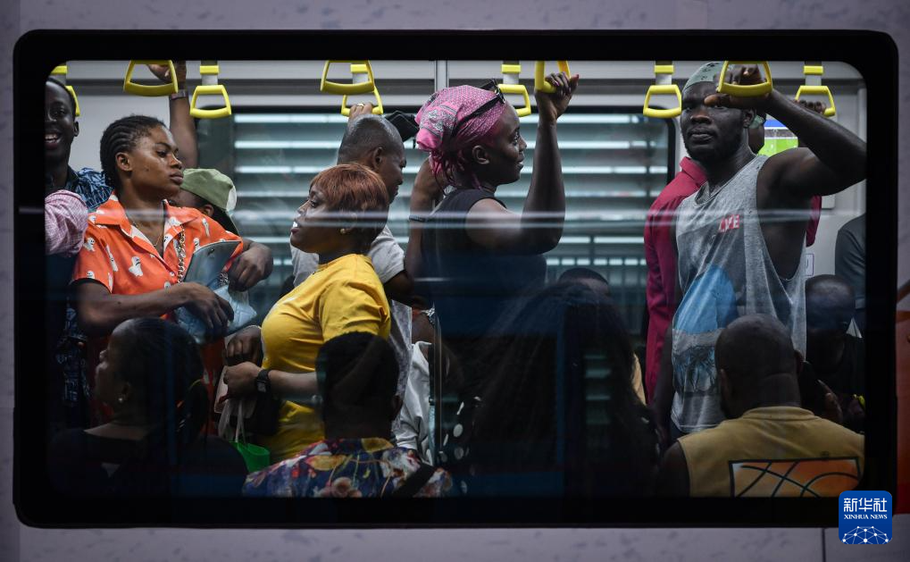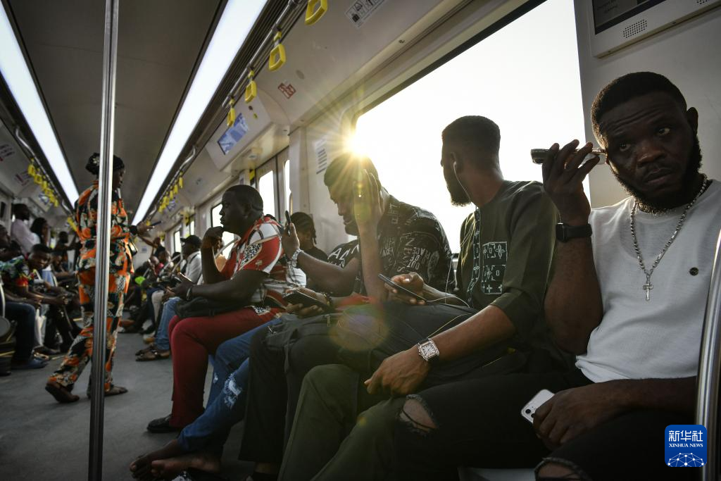 2月29日,在尼日利亚拉各斯,人们乘坐轻轨蓝线列车。