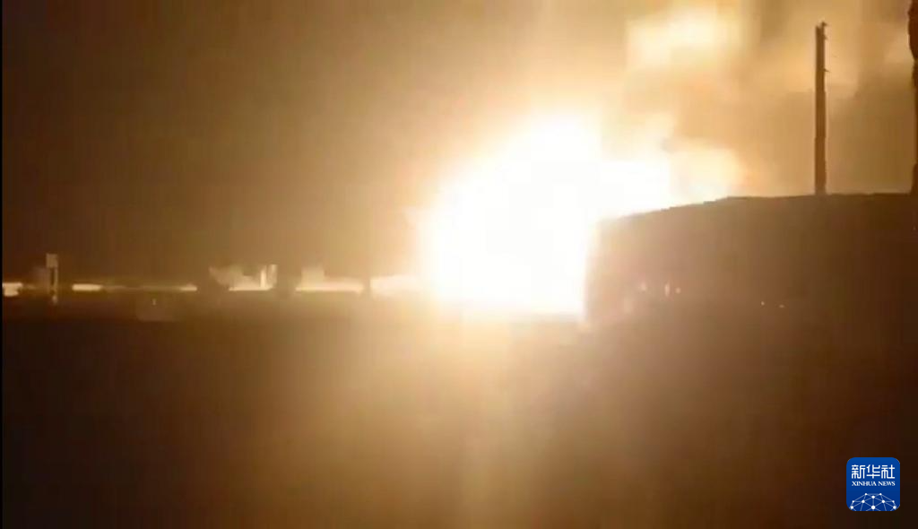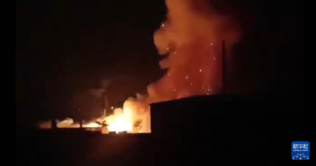 这张通联自当地媒体的视频截图显示,3月29日凌晨,叙利亚阿勒颇遭袭击后产生火光。