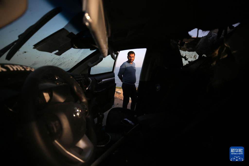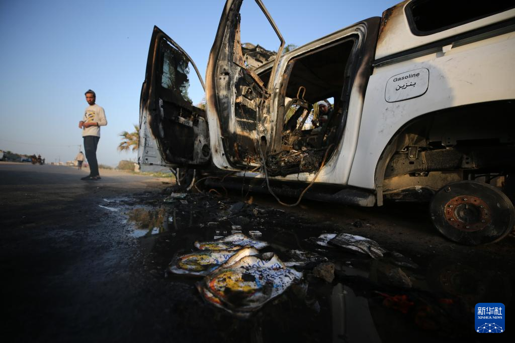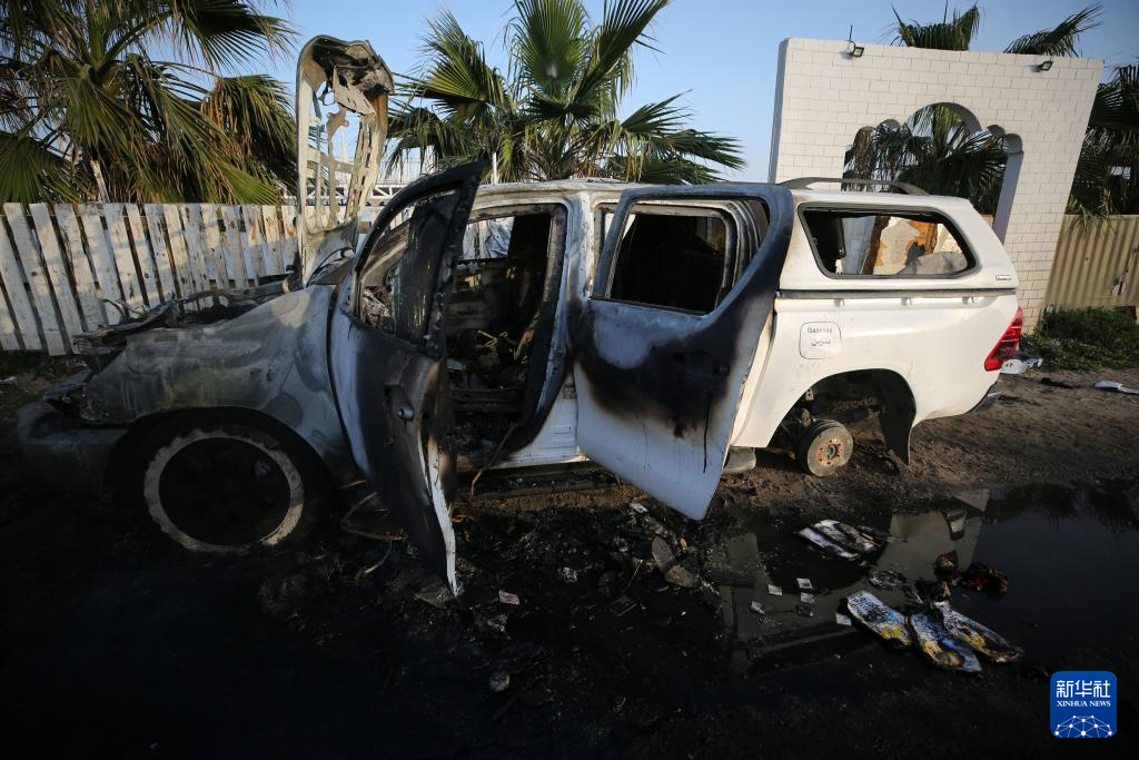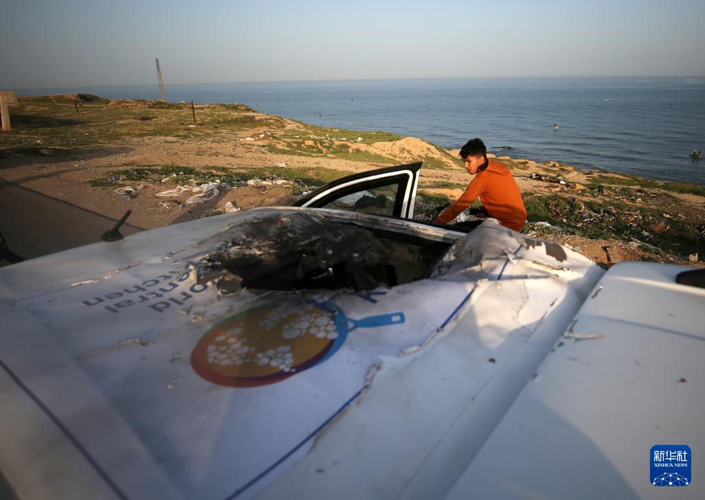 这是4月2日在加沙地带中部代尔拜拉赫拍摄的被毁的汽车。