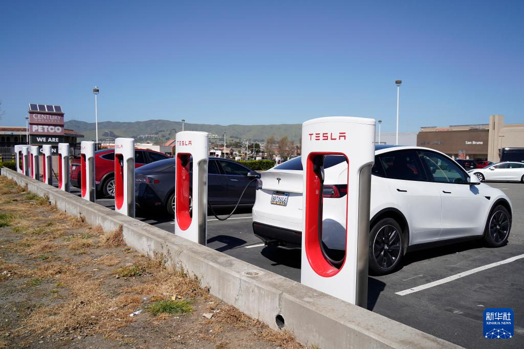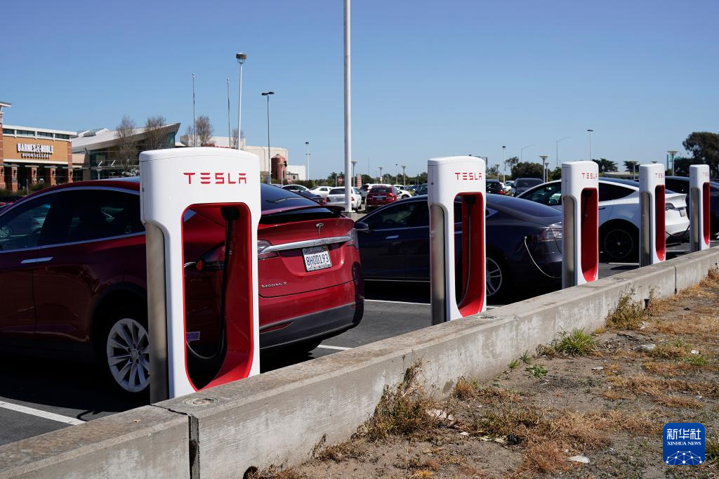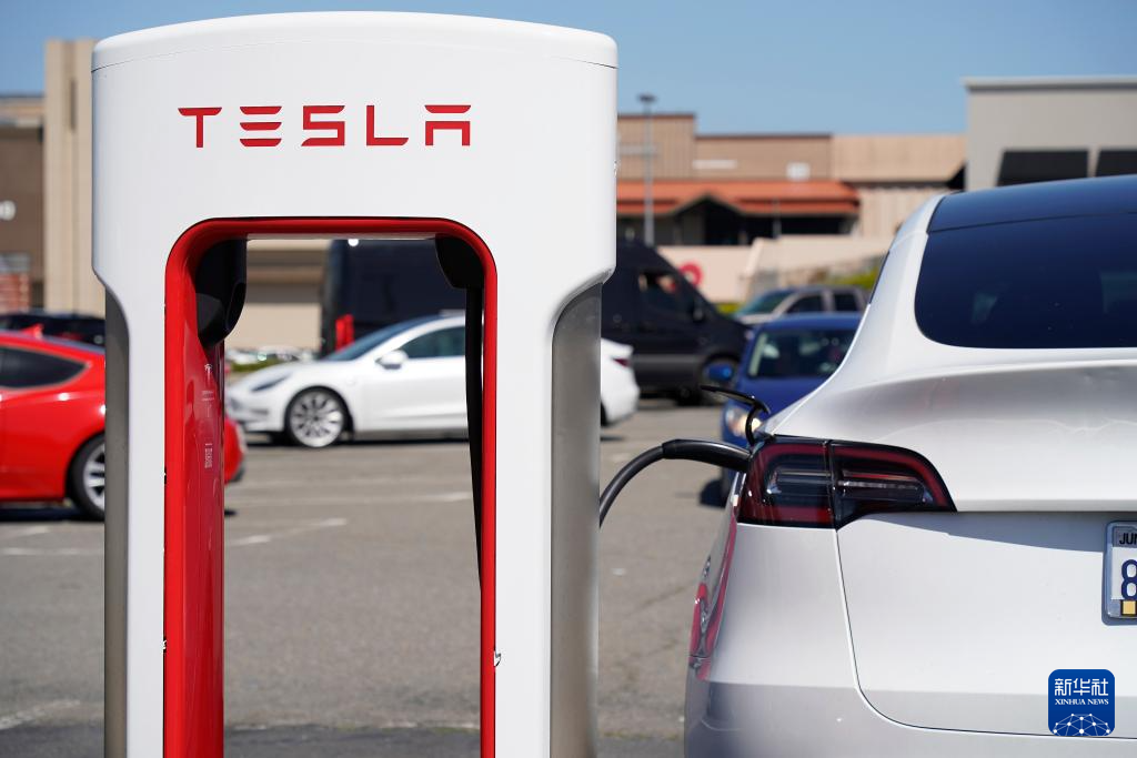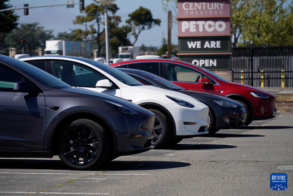 这是4月2日在美国加州圣布鲁诺一处停车场拍摄的特斯拉汽车。
