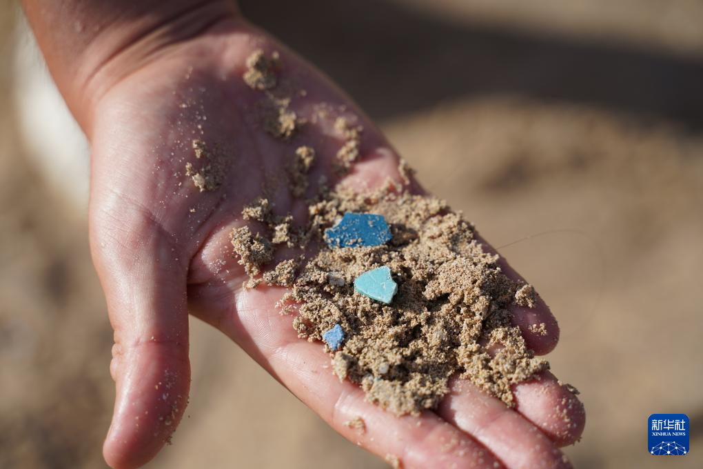 这是4月5日在智利复活节岛一处海滩上拍摄的海洋塑料垃圾。