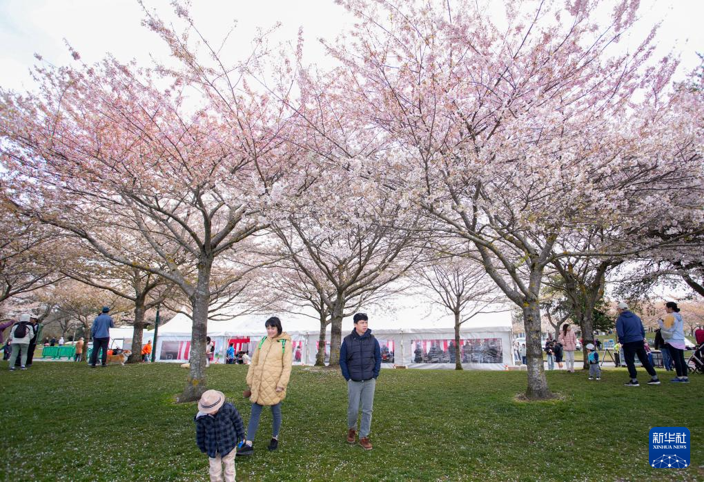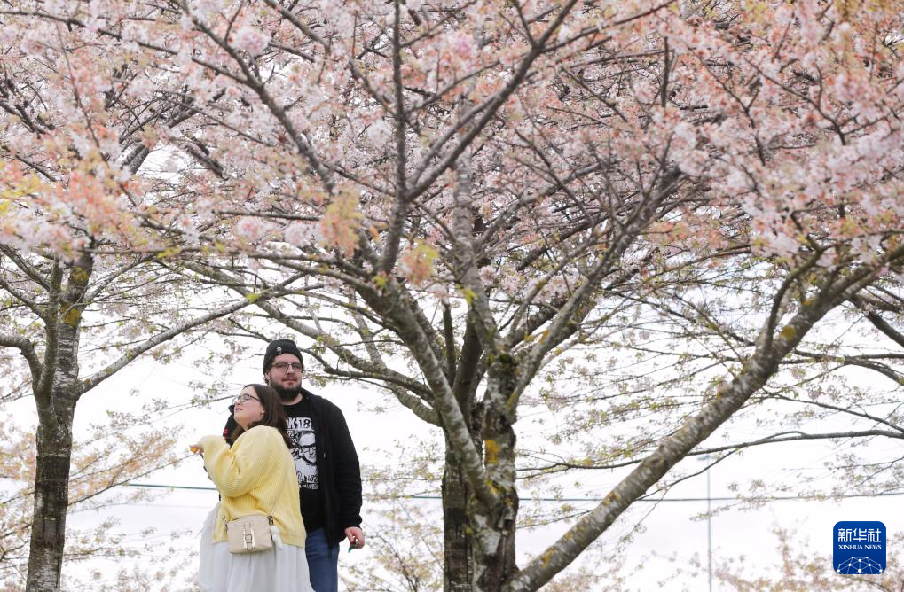 4月7日,在加拿大里士满,人们欣赏盛开的樱花。新华社发(梁森摄)