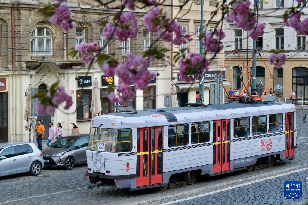 4月7日,在捷克首都布拉格,散步的人们经过盛开的春花。新华社记者 邓耀敏 摄pagebreak