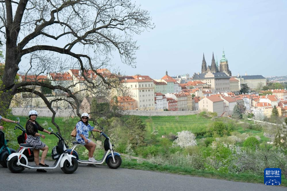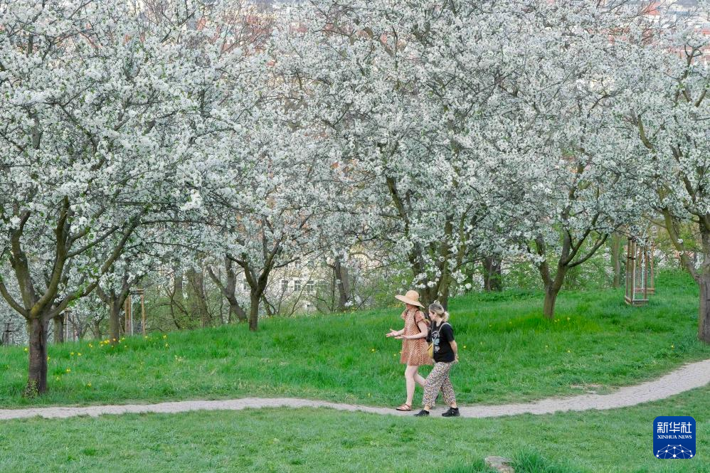 4月7日,人们在捷克首都布拉格的一处公园赏花。新华社记者 邓耀敏 摄pagebreak