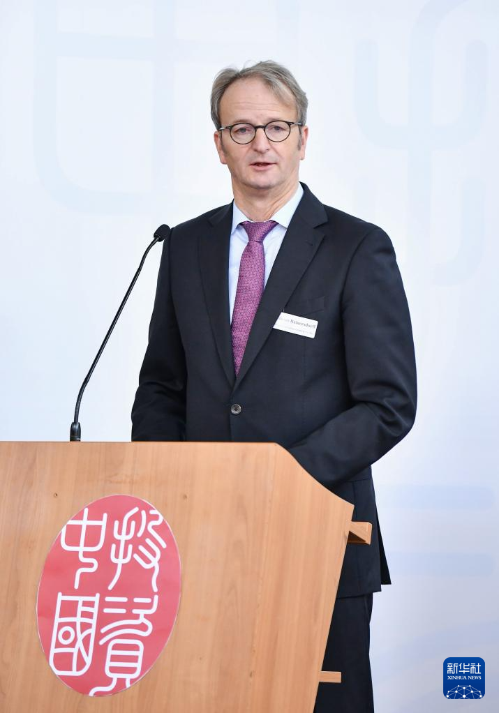 4月5日,德国联邦议院德中议会小组主席弗里德里希在德国斯图加特举行的2024“投资中国”系列活动德国专场上致辞。
