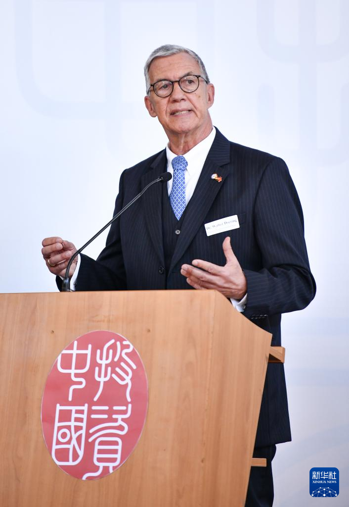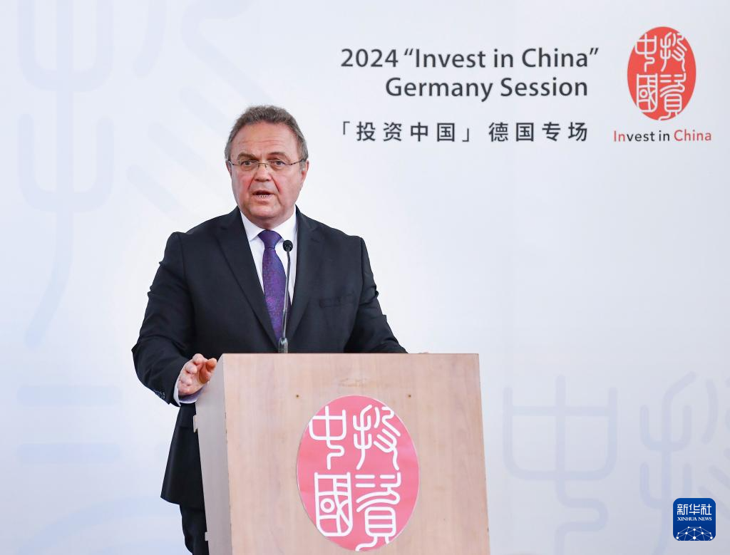 4月5日,德国巴登-符滕堡州前副州长瓦尔特·德林在德国斯图加特举行的2024“投资中国”系列活动德国专场上致辞。