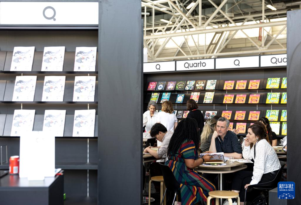 4月8日,人们在意大利博洛尼亚举行的第61届博洛尼亚国际童书展上交流。