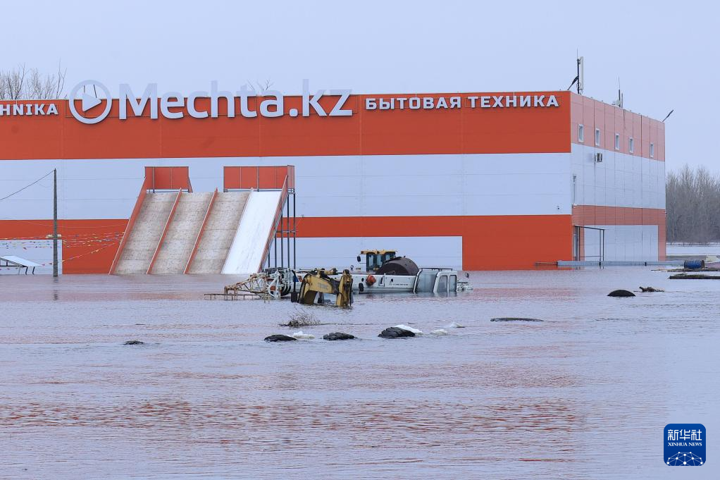 4月7日,哈萨克斯坦科斯塔奈州的一家电器商场被洪水淹没。