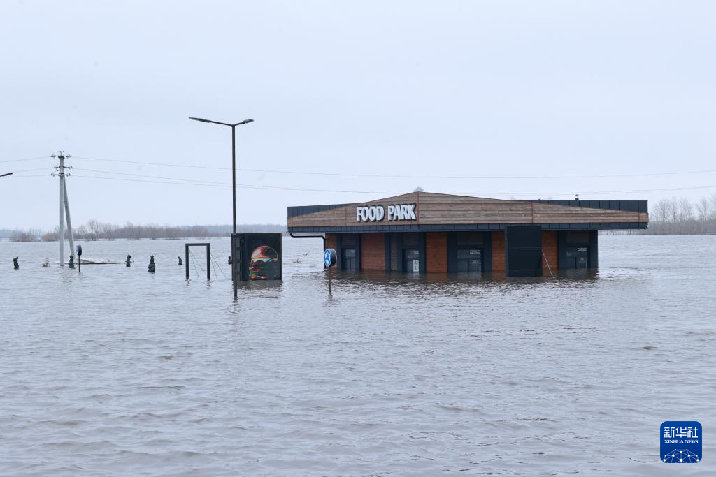 这是4月5日在哈萨克斯坦阿克莫拉州拍摄的泛滥洪水。