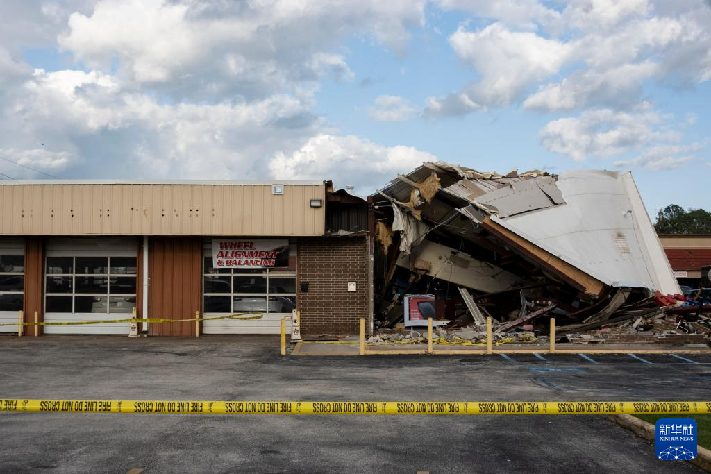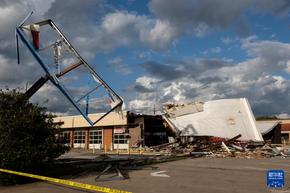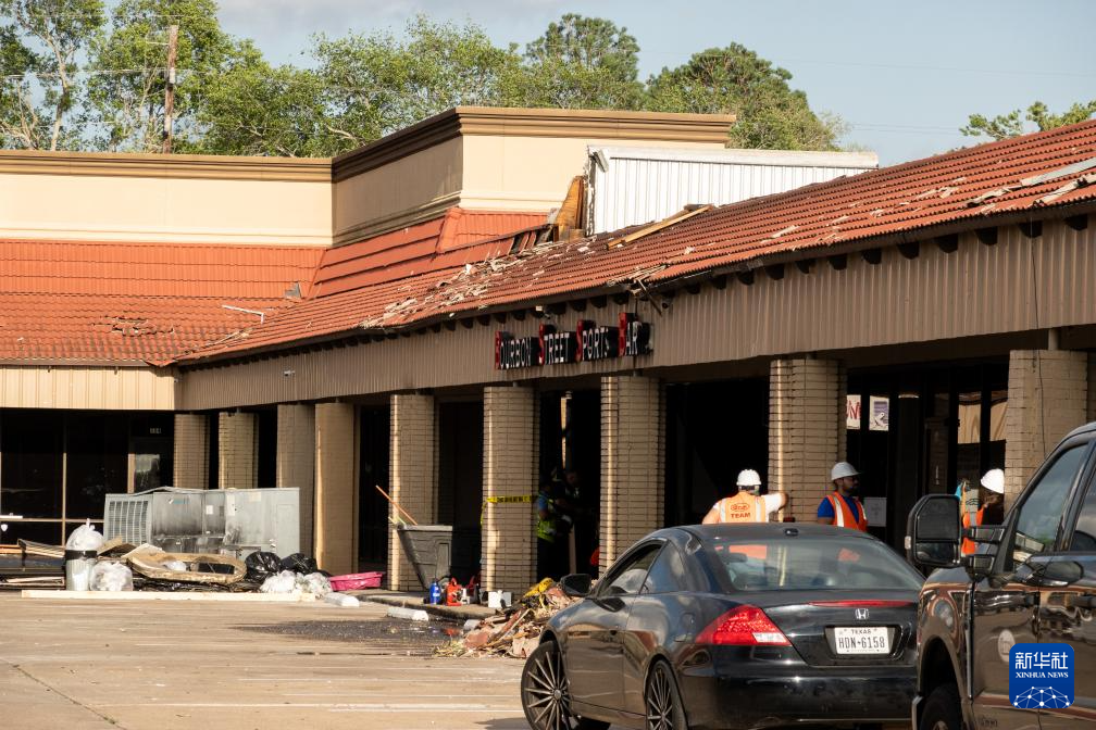 4月10日,在美国休斯敦附近的凯蒂,一座购物中心遭龙卷风袭击后受损。
