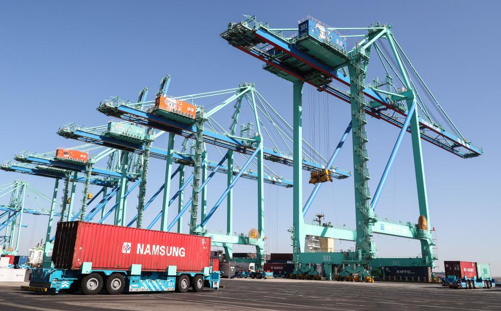 这是3月1日拍摄的天津港北疆港区C段智能化集装箱码头。新华社记者单宇琦摄