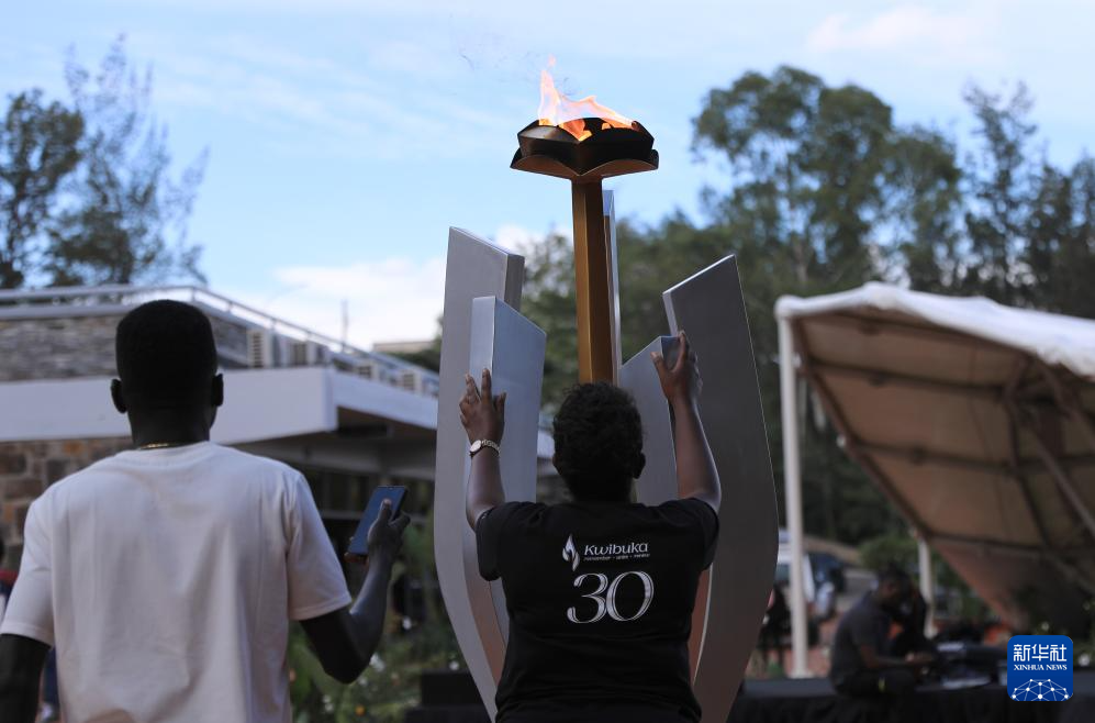 这是4月8日在卢旺达首都基加利的基加利大屠杀纪念馆拍摄的纪念火炬。