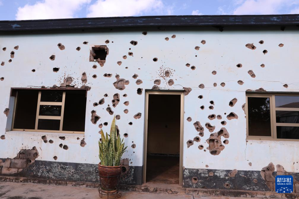 4月4日在卢旺达首都基加利拍摄的布满弹孔的房屋。保护女总理阿加特·乌维林吉伊马纳的10名联合国卢旺达援助团官兵在此遇难。