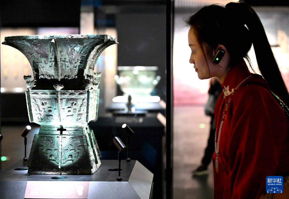 2024年2月26日,参观者在河南安阳殷墟博物馆新馆内观展。