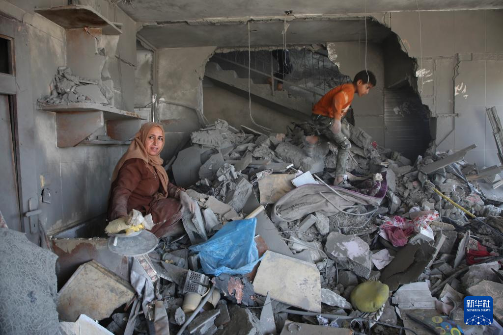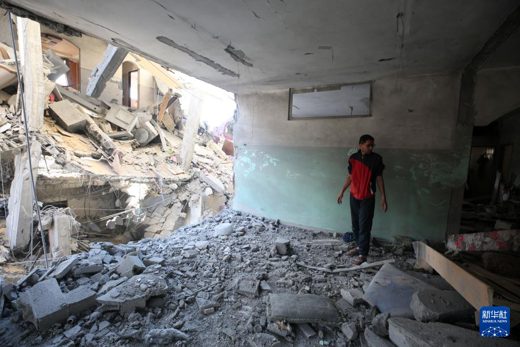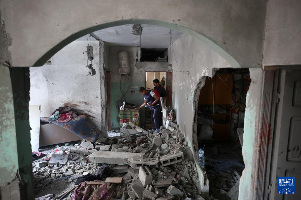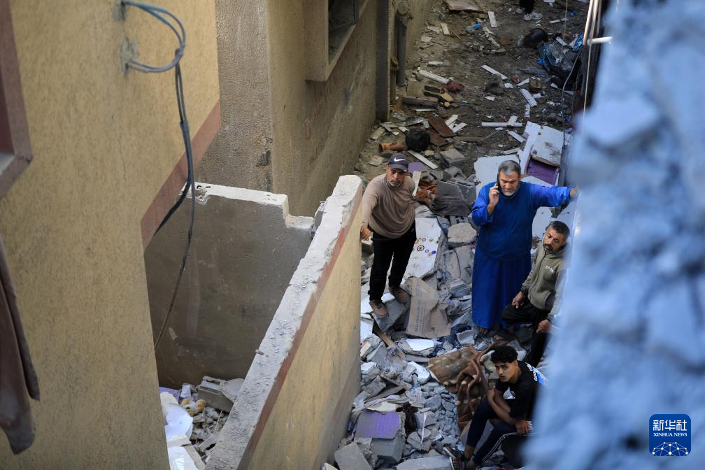4月20日,在加沙地带南部城市拉法,巴勒斯坦人查看被以军空袭的建筑。