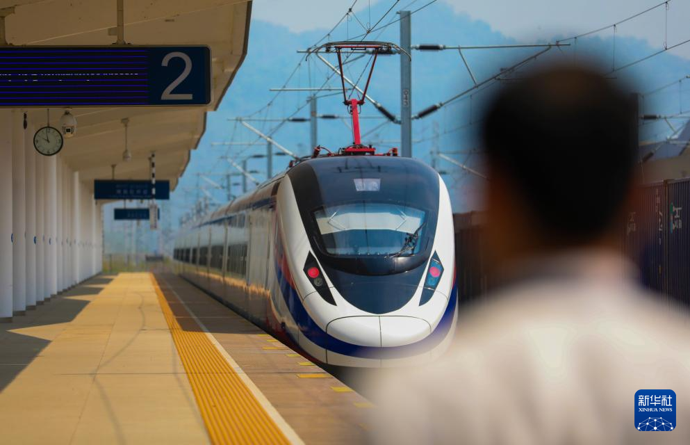 4月12日,在中老铁路老挝琅勃拉邦站,客运值班员立岗迎接列车。