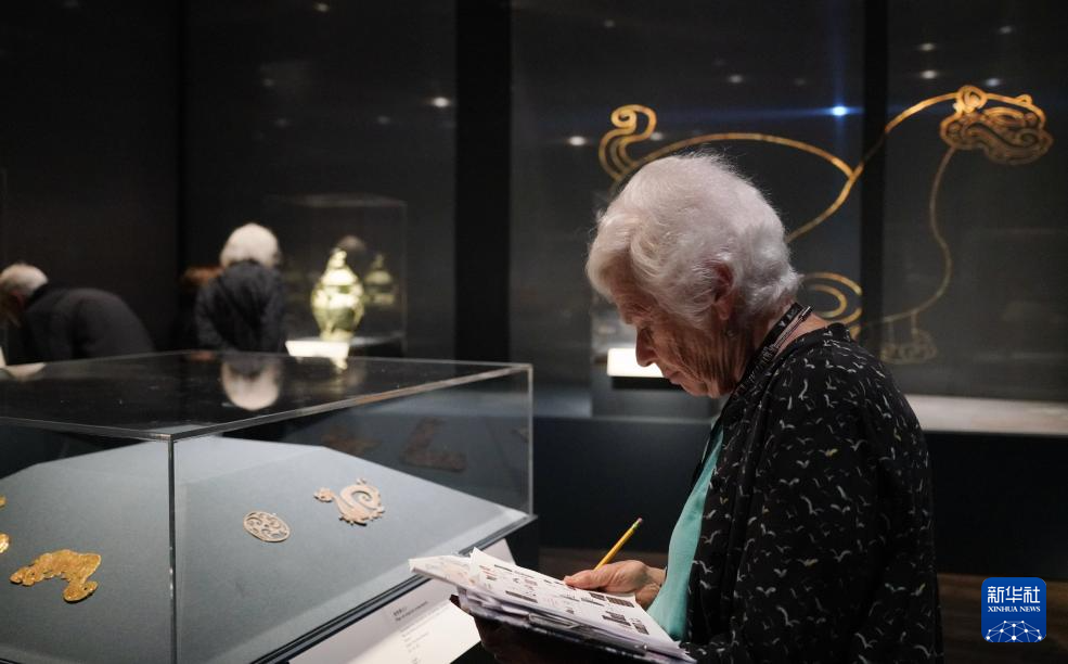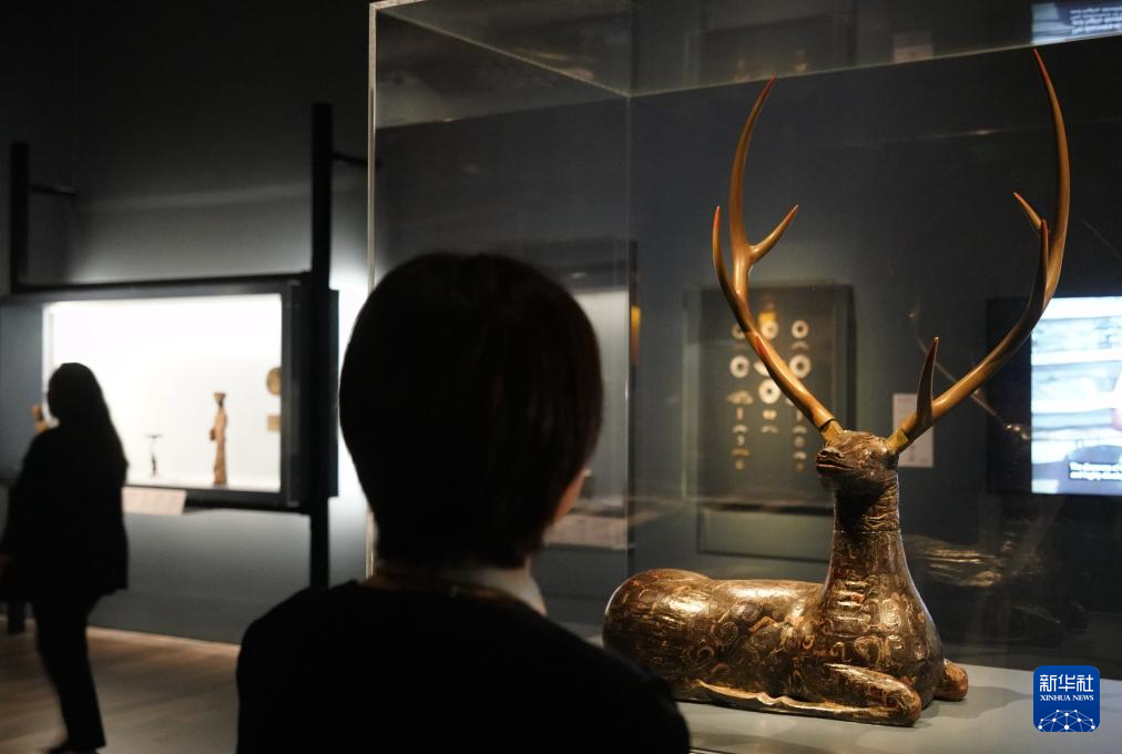 4月19日,观众在美国旧金山亚洲艺术博物馆举办的“凤凰故国——青铜时代曾楚艺术展”上参观。
