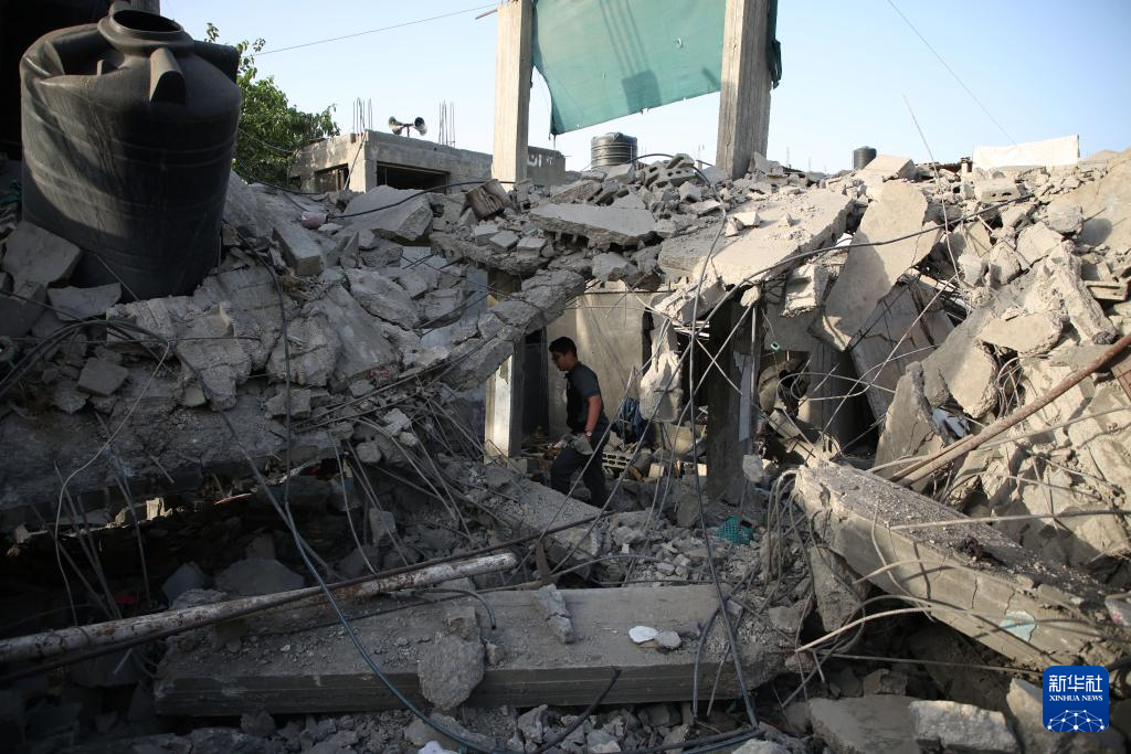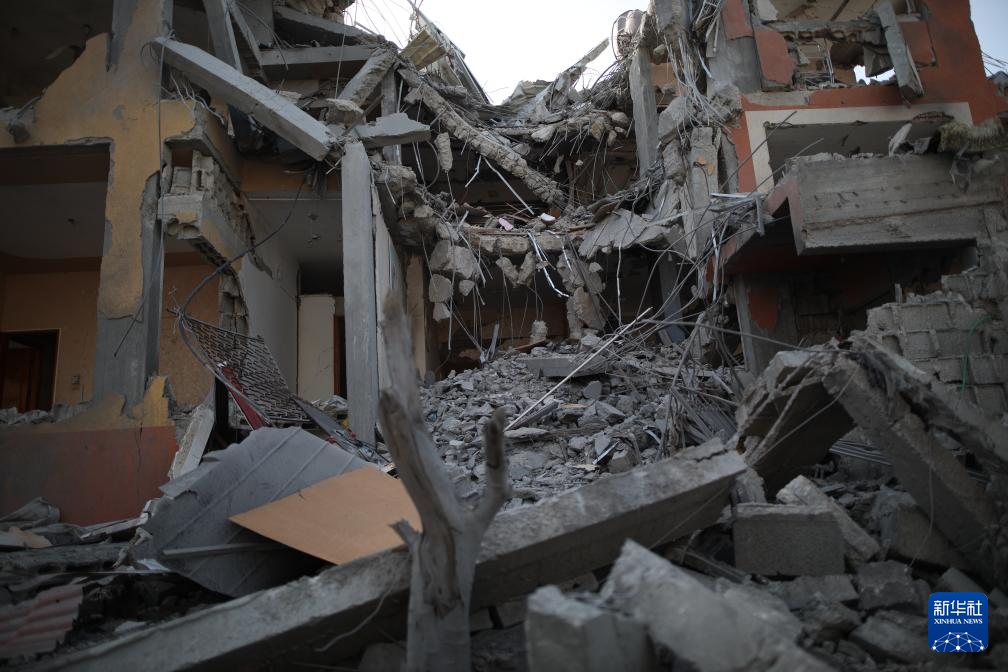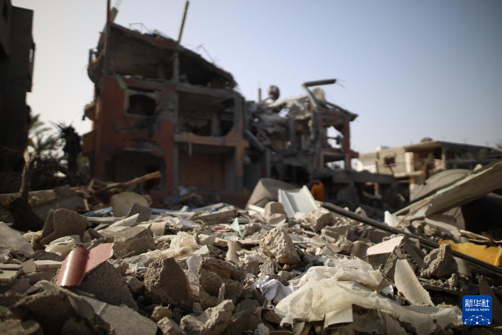 这是4月24日在加沙地带南部城市拉法拍摄的遭袭后的建筑物废墟。