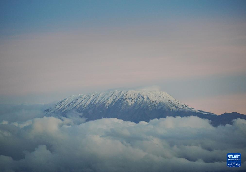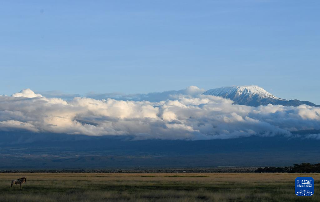 这是4月27日在肯尼亚卡贾多县安博塞利国家公园里拍摄的乞力马扎罗山山峰。