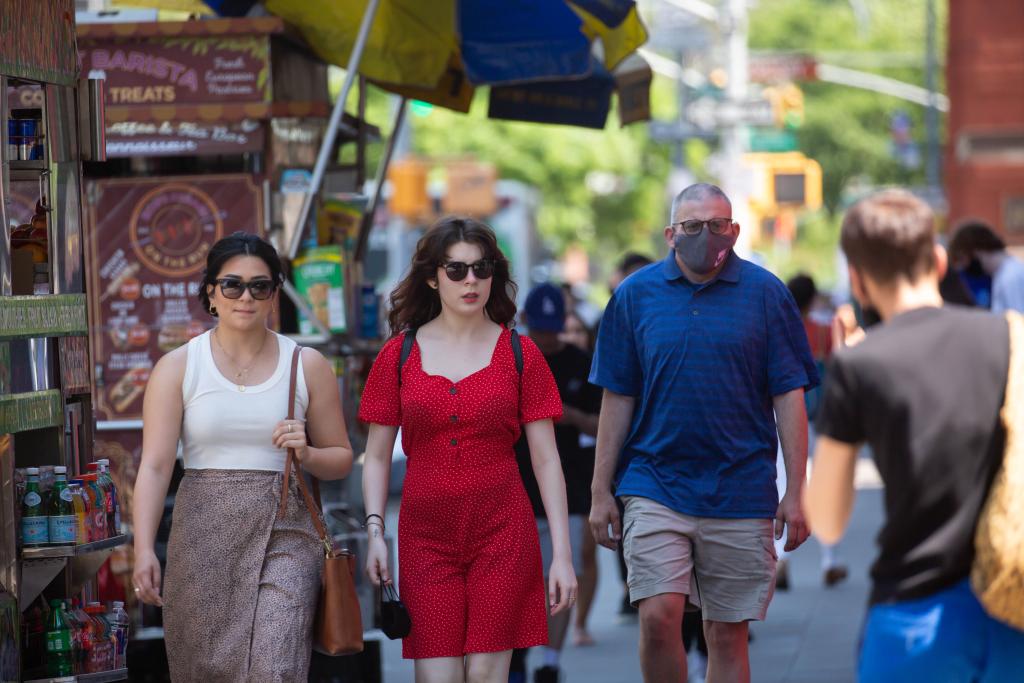 2021年5月19日,人们走在美国纽约街头。新华社发(郭克摄)