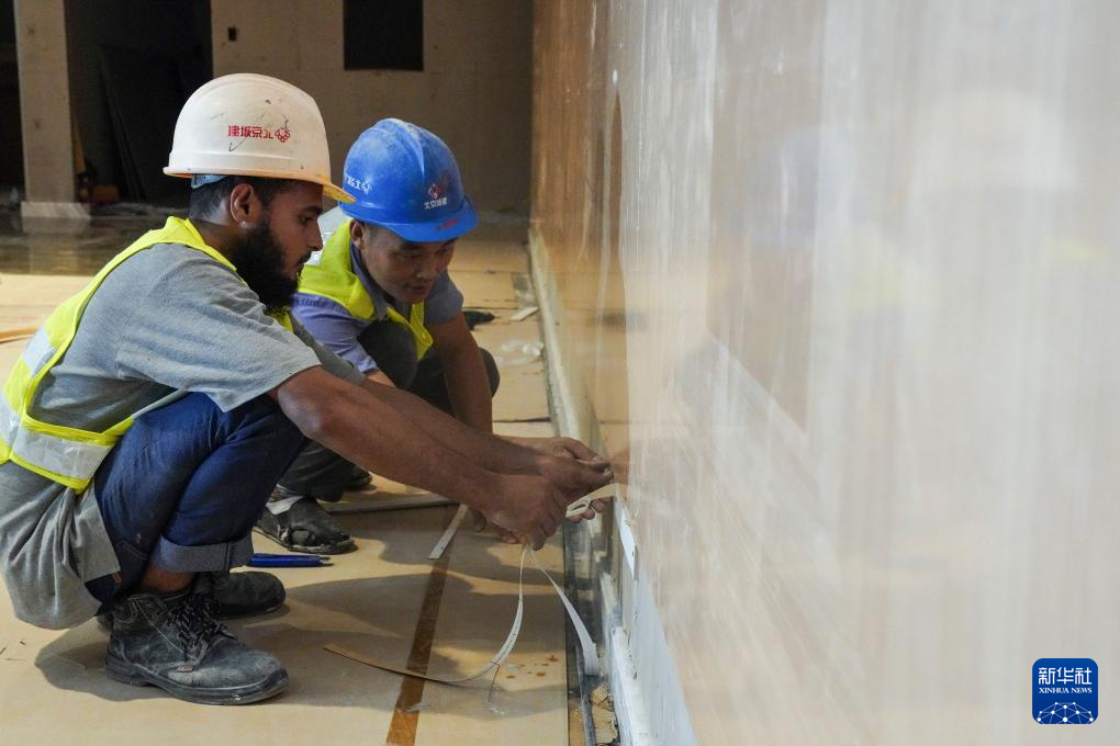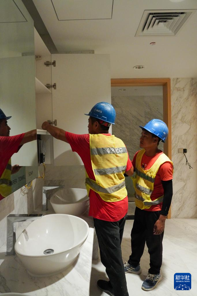 4月28日,北京城建集团的中方员工同外方员工共同完成马尔代夫维拉纳国际机场VIP航站楼二期最后的装修工作。