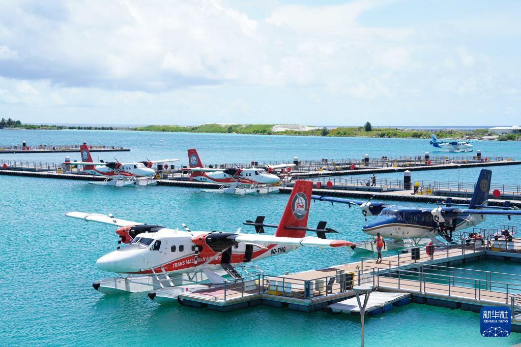 这是2024年4月28日拍摄的中企承建的马尔代夫维拉纳国际机场水上飞机设施项目。