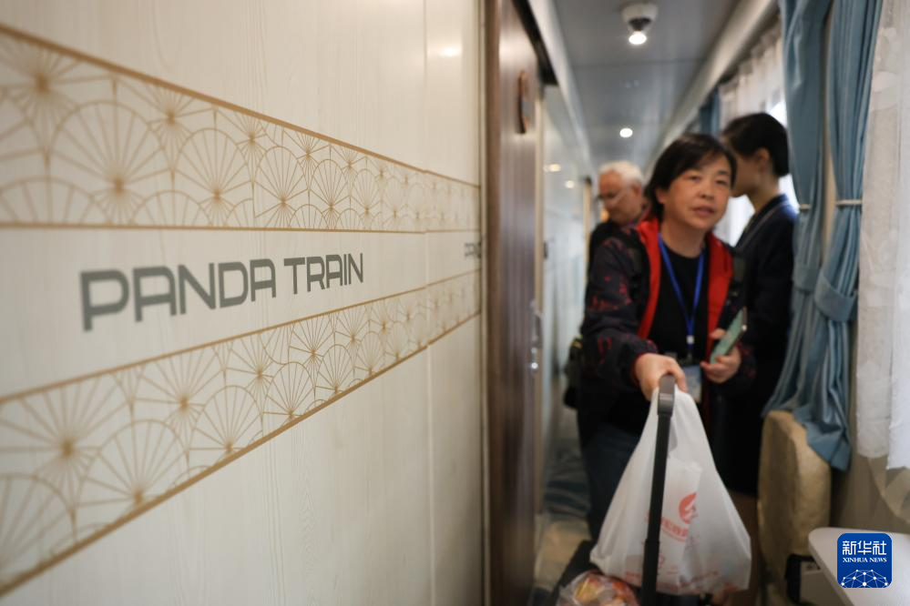 5月8日,旅客登上“熊猫专列”后进入包间。