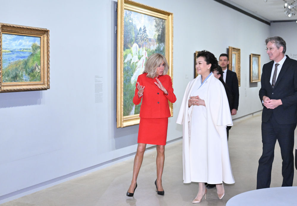 当地时间5月6日下午,国家主席习近平夫人彭丽媛在巴黎应邀同法国总统马克龙夫人布丽吉特共同参观奥赛博物馆。新华社记者 岳月伟 摄