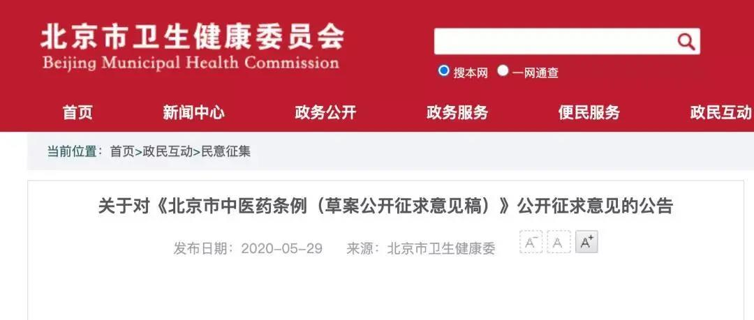 日前,北京市卫生健康委、市中医管理局会同相关部门起草《北京市中医药条例(草案公开征求意见稿)》及说明,至6月28日公开征求意见。