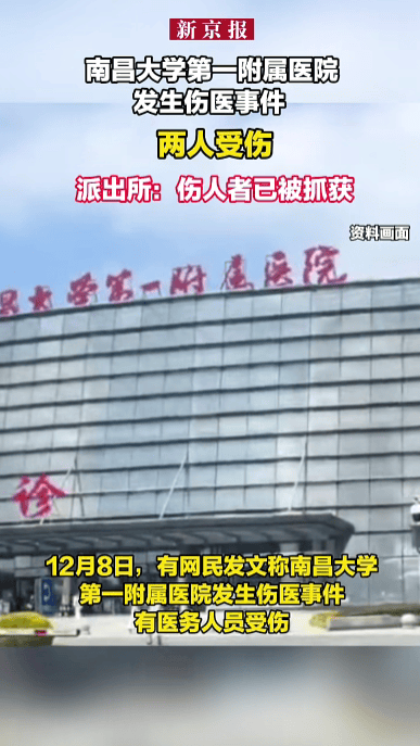 12月8日,有网民发文称南昌大学第一附属医院发生伤医事件,有医务人员受伤。 新京报记者从南昌大学第一附属医院获悉,有两名医务人员'...