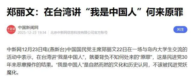 日前,国民党主席郑丽文连续有大动作,她已经联合民众党主席黄国昌,对赖清德发起了“弹劾”。同时,郑丽文继续推动国民党人事任命,张显耀、沈建亿成为蓝营智库正副执行长,陈菁徽、吴怡玎出任副执行长。而在岛内的东吴大学,郑丽文举行了演讲,被绿营学生当面质问“为什么要说我们都是中国人”,她直接进行正面对决,指出岛内写的是中国字,讲的是中国话,吃的是中国菜,延续着大量中国数千年的传统,这些自然而然的文化和历史认同,说明岛内民众就是中国人。而对当场绿营学生对“中国人”身份的强烈排斥,郑丽文则当面强调:“我是中国人,我从来没有否认”,并反问“为什么你们会觉得‘中国人’是被视为‘敌人’的词汇”。
