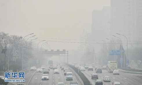 雾霾笼罩下的北京西二环(2月15日摄)。爆表!爆表!爆表!元宵节以来的3天中,北京市空气中PM2.5浓度始终保持着这样的节奏。同时,我国33个城市发生了重度及以上污染。前所未有的严重雾霾天气,已不是大自然再次敲响的警钟,而是一次更加严厉的惩罚。 雾锁中国,我们究竟能做什么? 新华社记者 李文 摄