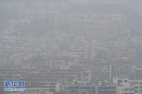 1月7日,贵阳市市区笼罩在灰色的雾霾中。爆表!爆表!爆表!元宵节以来的3天中,北京市空气中PM2.5浓度始终保持着这样的节奏。同时,我国33个城市发生了重度及以上污染。前所未有的严重雾霾天气,已不是大自然再次敲响的警钟,而是一次更加严厉的惩罚。 雾锁中国,我们究竟能做什么? 新华社记者 刘续 摄