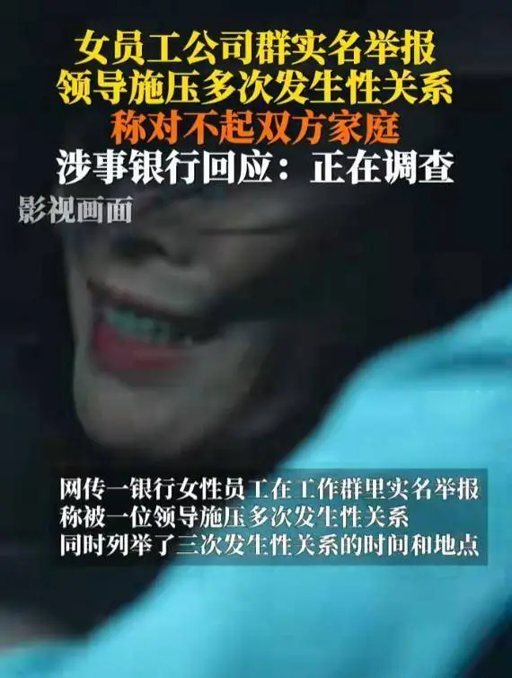 12月5日,网传一张微信群聊截图引发热议,截图里面的内容为一银行女职工实名举报她的领导利用职务之便,对她进行多次施压,要求与她发生关系,多达三次!