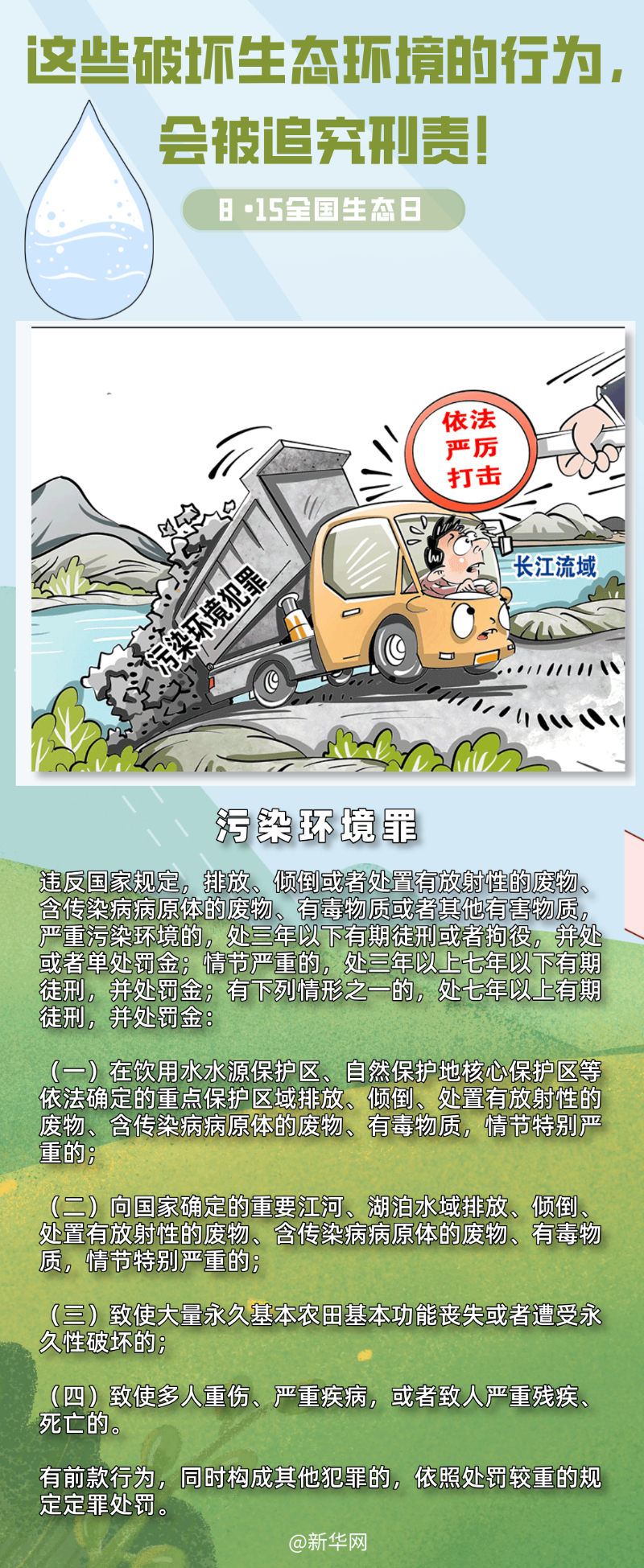 这些破坏生态环境的行为,会被追究刑责!-"近年来,我国不断完善法律体系,加大了对生态环境违法行为的处罚力度,对于严重污染环境行为,构成犯罪的必将依法追究刑'...