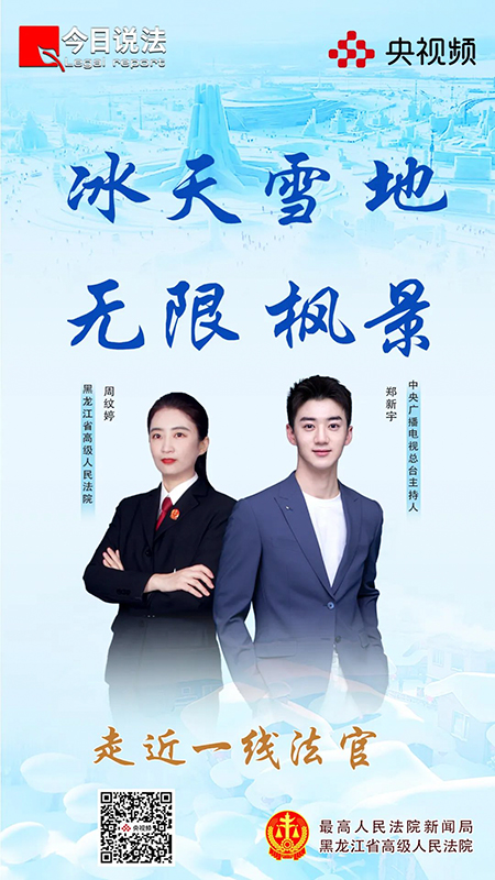 1月22日15:30,最高人民法院新闻局与中央广播电视总台《今日说法》、央视频“走近一线法官”融媒体节目,打卡黑龙江,奔赴冰雪盛宴。我们在黑龙江等你!