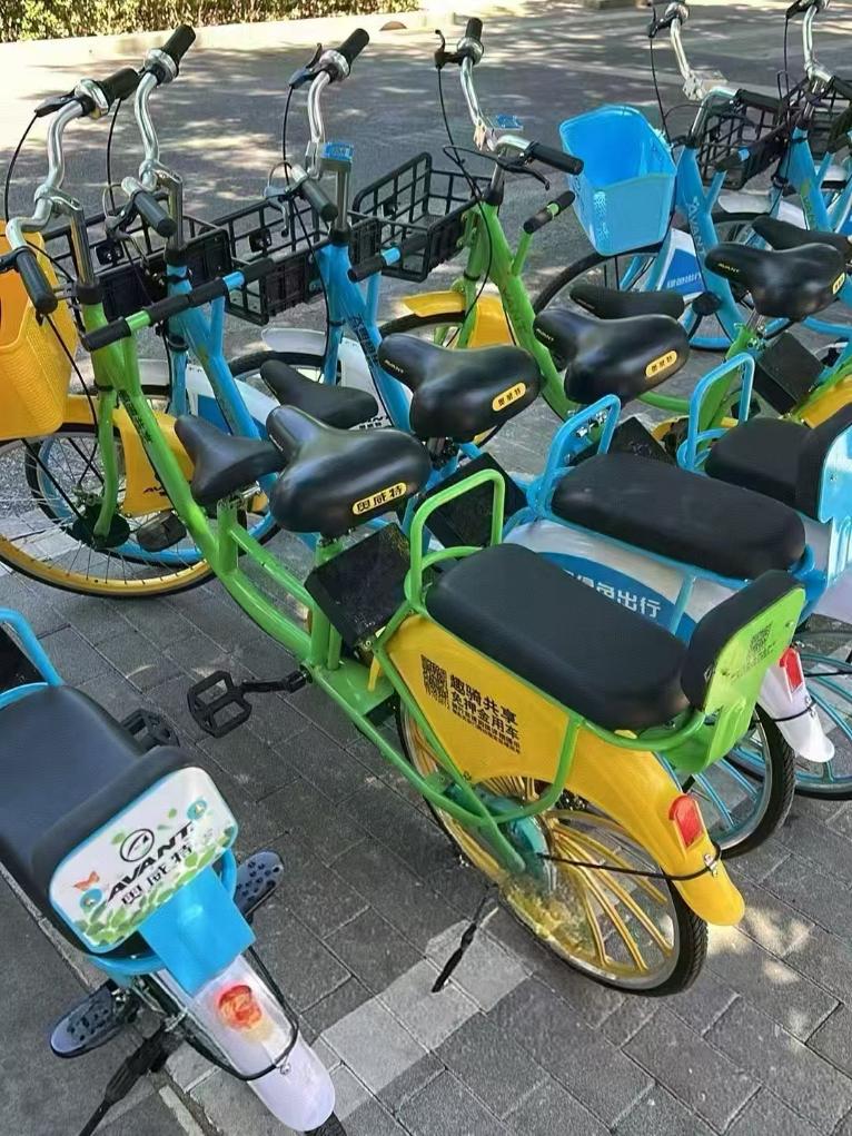 “山寨共享单车”违规投放并前后加装座椅。新华社发