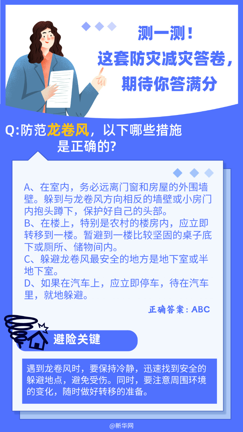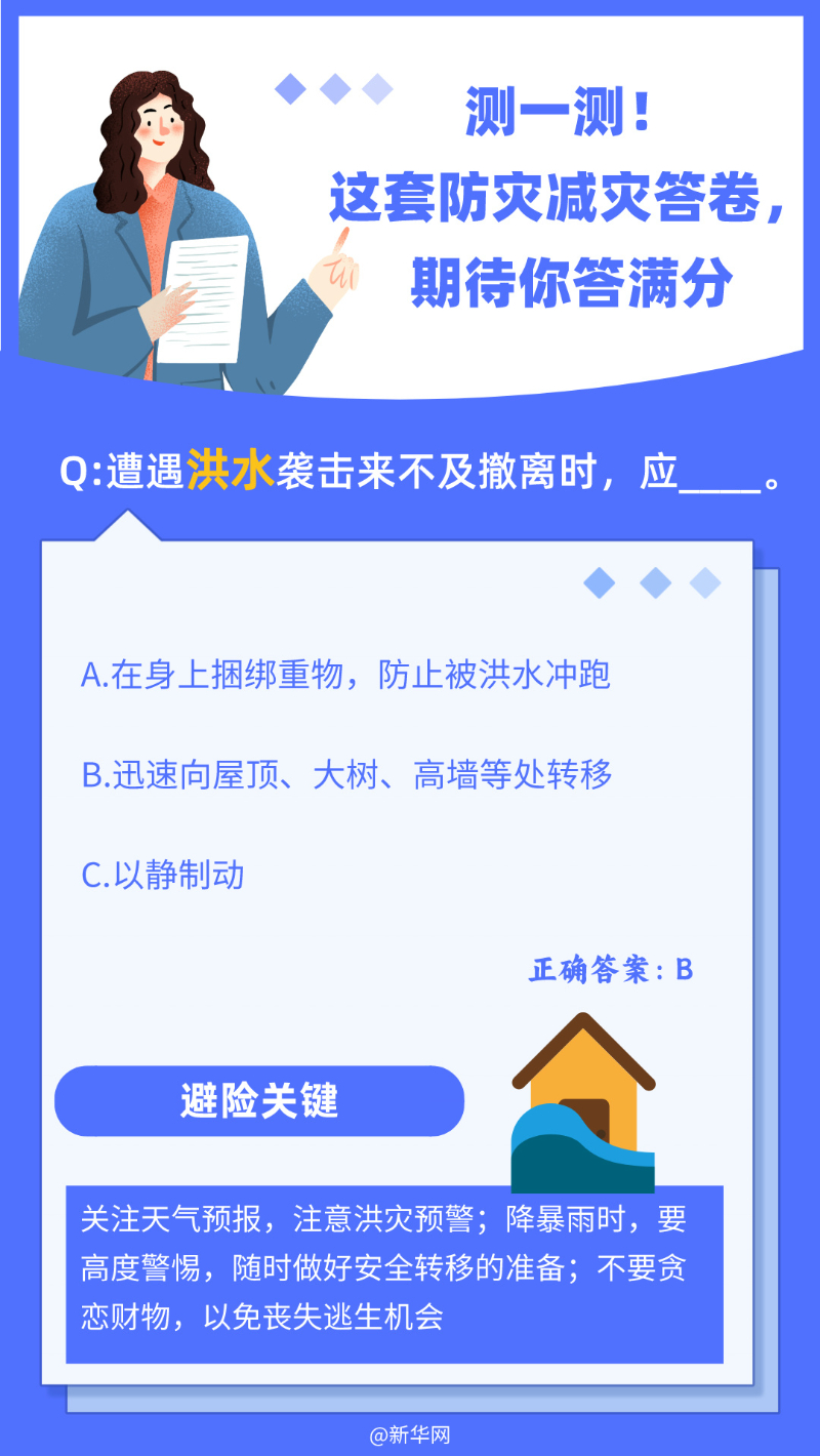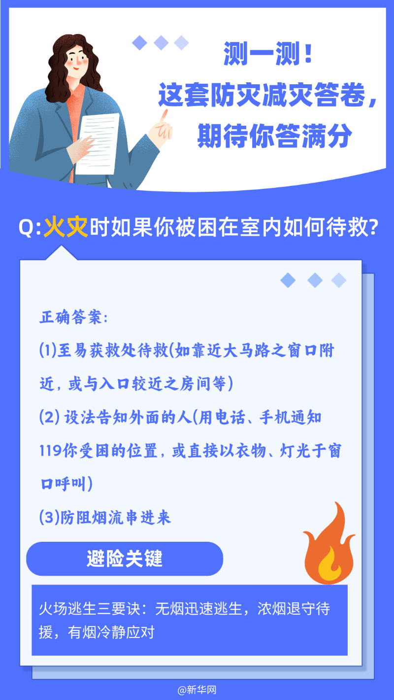 今年5月12日是第16个全国防灾减灾日,主题是“人人讲安全、个个会应急——着力提升基层防灾避险能力”。人人讲安全,个个会应急,这套题你拿到满分了吗?