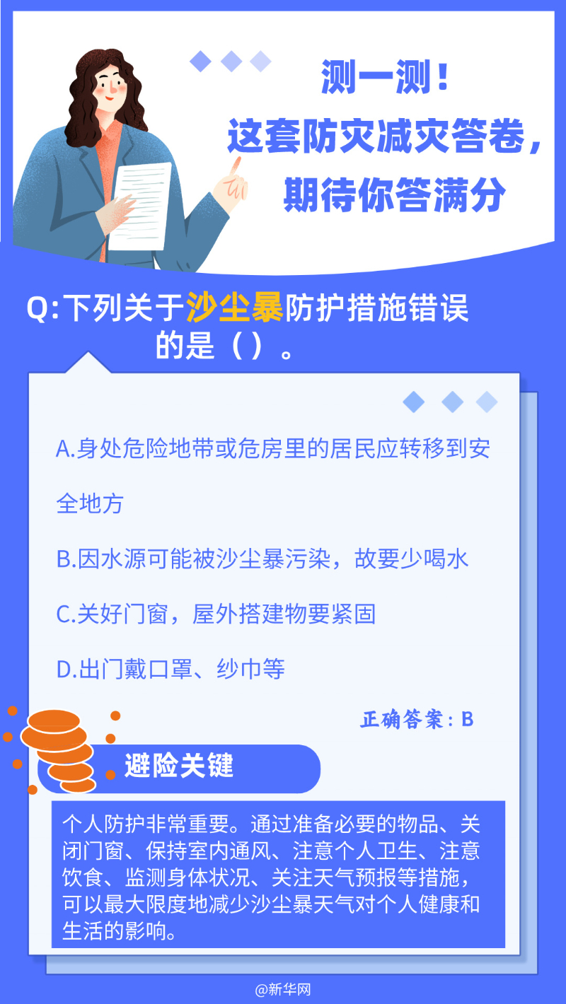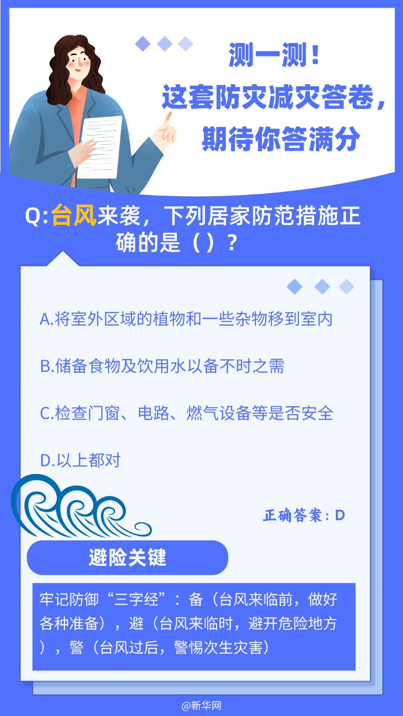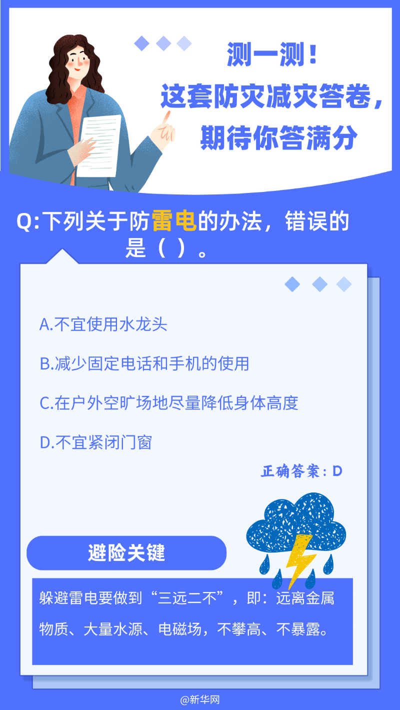 今年5月12日是第16个全国防灾减灾日,主题是“人人讲安全、个个会应急——着力提升基层防灾避险能力”。人人讲安全,个个会应急,这套题你拿到满分了吗?