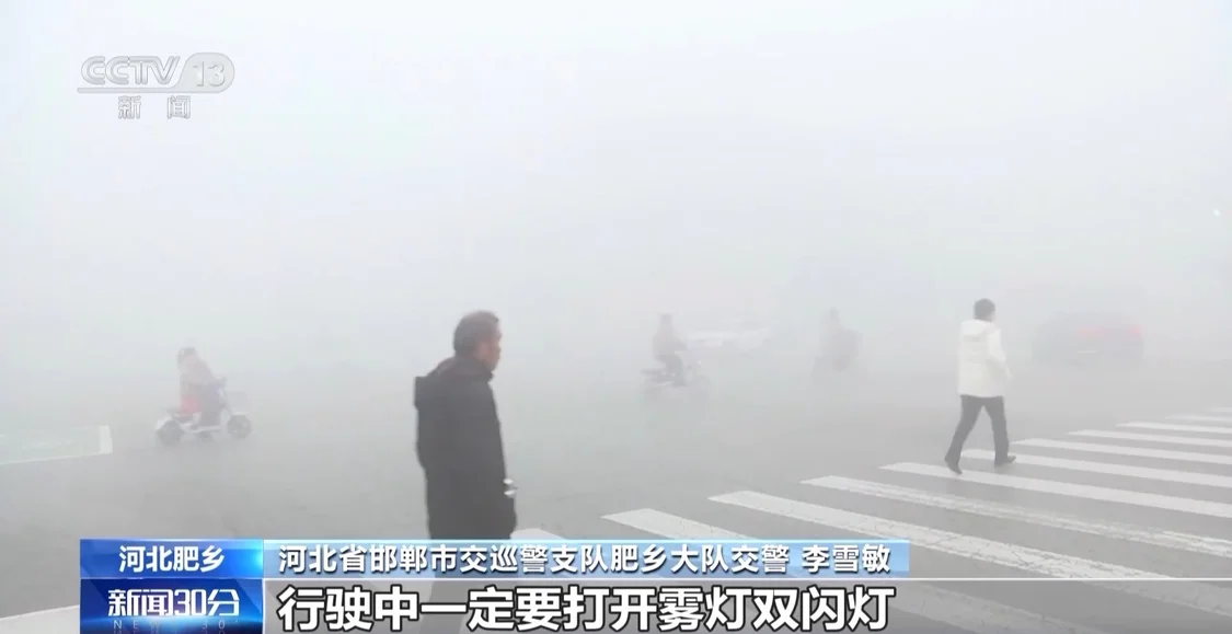 河北省邯郸市交巡警支队肥乡大队交警 李雪敏:大雾天气,谨慎驾驶,减速慢行,行驶中一定要打开雾灯和双闪灯,保持车距。