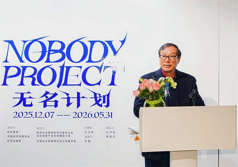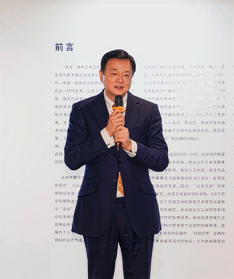 旺旺集团副董事长周锡玮在致辞中,结合艺术家与企业家的双重身份,分享了对创作与两岸文化交流的见解。他表示,艺术是连接两岸情感的重要纽带,期待通过“无名计划”促进更多艺术家的交流互鉴。