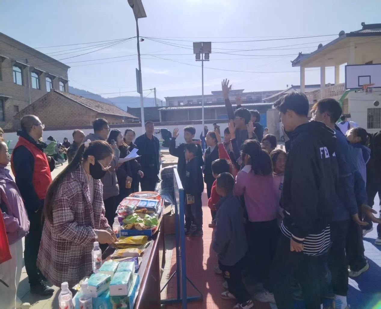 趣味问答环节同样人气爆棚。志愿者们精心设计了涵盖乡村振兴政策、绥远古城历史、生活常识、古诗词等多领域的题目,以抢答形式开展,答对即有奖品。孩子们争先恐后举手作答,“中国化学帮我们村修了多少公里生产道路?”“骆驼城遗址是什么时期的建筑?”“发生火灾怎么逃生”等题目,既考验知识储备,又普及了帮扶成果与本土文化。随后的套圈区,生活用品、零食、等礼品整齐排列,村民们手持套圈瞄准目标,欢呼声、惋惜声此起彼伏,现场成为欢乐的海洋。据悉,套圈礼品均来自城壕镇的企业产品,既为活动增添趣味,也为企业产品做了展示宣传。