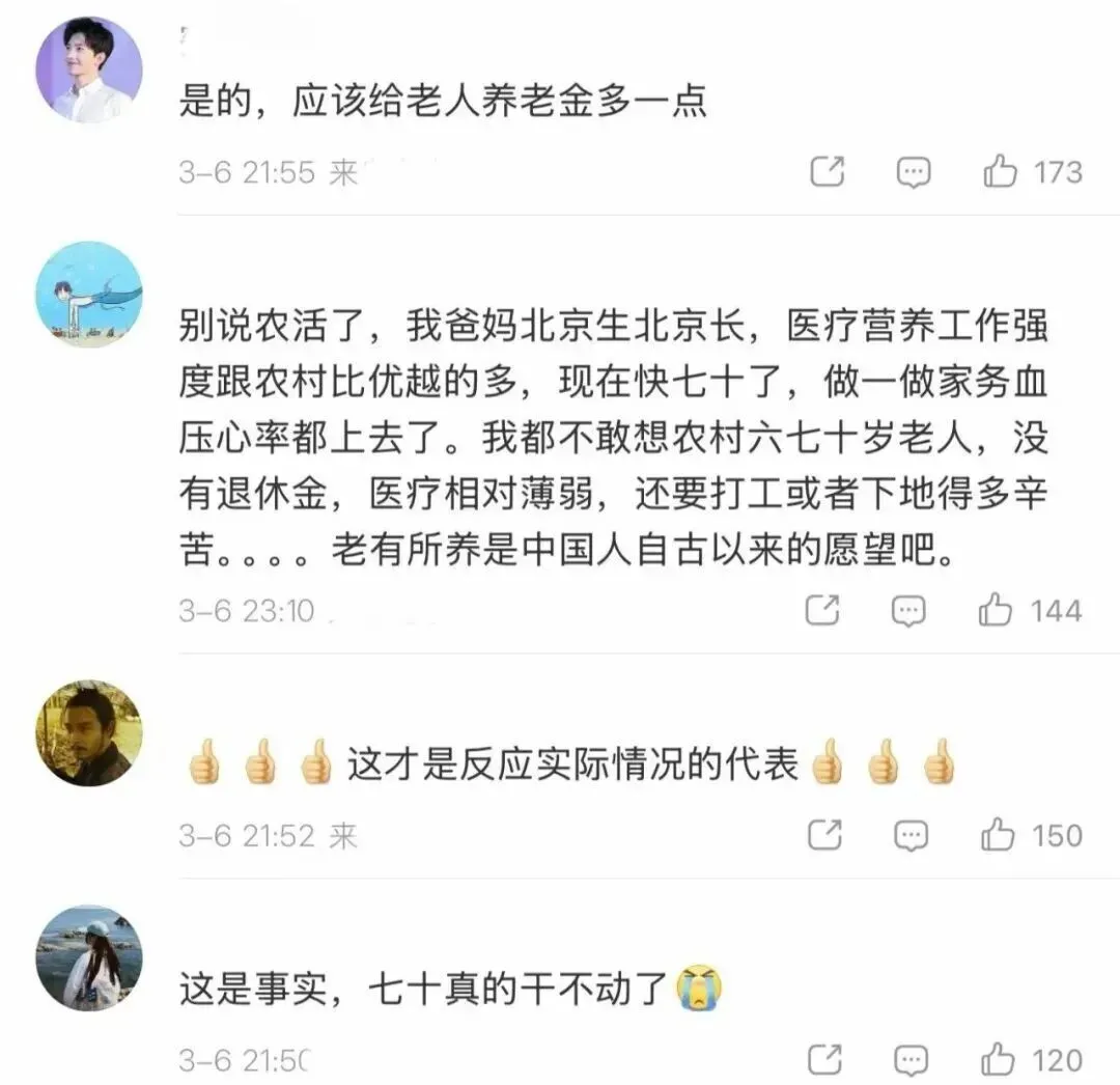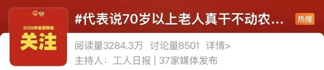 相关话题#代表说70岁以上老人真干不动农活了# 迅速登上微博全国热搜榜第一,引发网友热议。