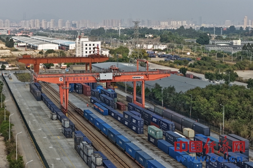 一列满载生活日用品的中欧班列从厦门前场铁路大型货场驶出。杨宝森/摄