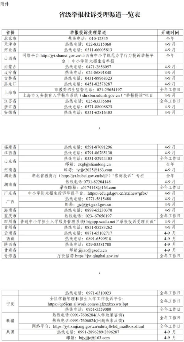 附件:省级举报投诉受理渠道一览表