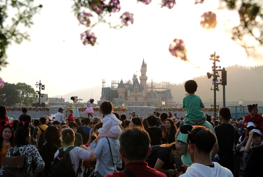 游客在香港迪士尼乐园度假区游玩。新华社记者 李钢 摄