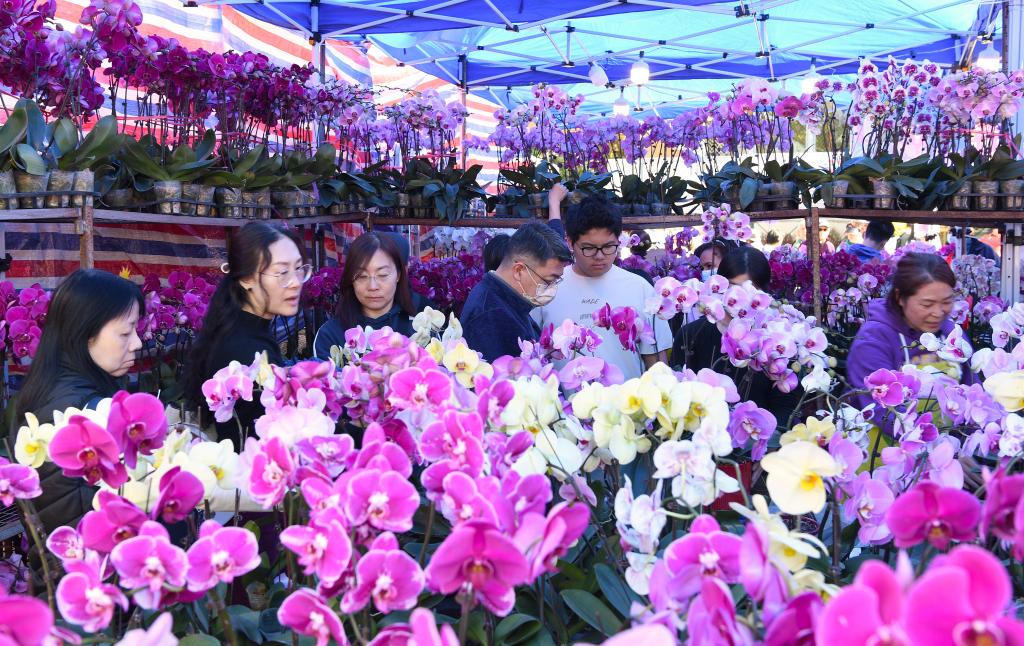 1月27日,市民在香港年宵花市上选购鲜花。新华社记者 陈铎 摄