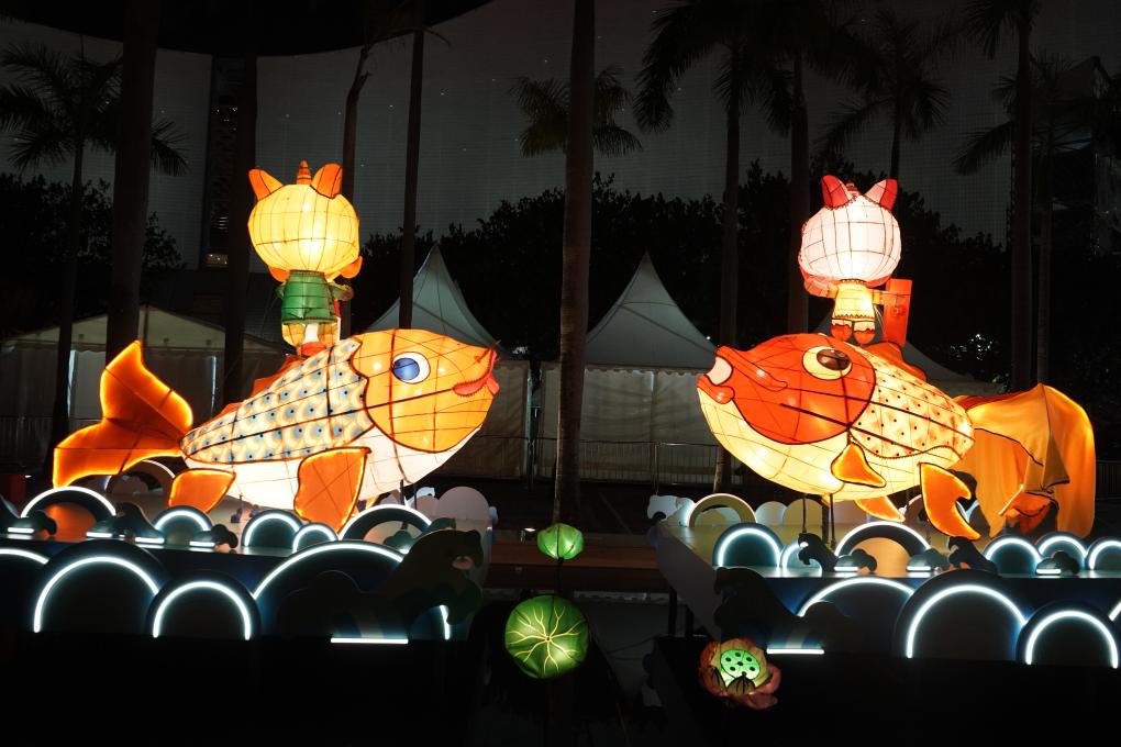 这是在香港文化中心露天广场拍摄的彩灯(1月27日摄)。新华社记者 褚萌萌 摄