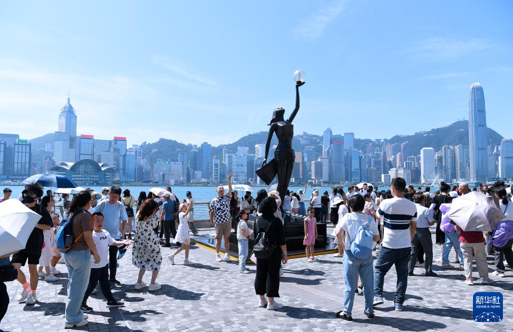 游客在香港星光大道游览(2024年10月3日摄)。新华社记者 陈铎 摄