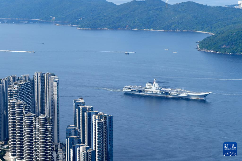 7月3日,中国海军山东舰航母编队抵达香港。这是山东舰行进在香港水域。